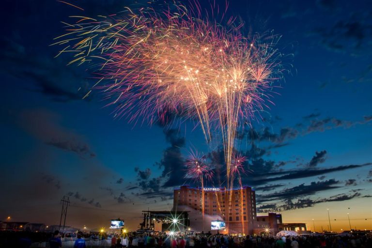 After years of planning and a ground breaking in 2012, Sanford Health’s new 11-story Fargo Medical Center became open to the public on July 25, 2017. Prior to the public opening, Sanford Health hosted a concert for employees and their guests on the grounds of the Sanford Medical Center Fargo. The concert featured Fergie and Lionel Richie. The final song of the evening, Lionel Richie’s hit “All Night Long” was accompanied by our fireworks display. In addition to traditional aerial fireworks, RES Pyro proximate pyrotechnics were utilized behind the stage.